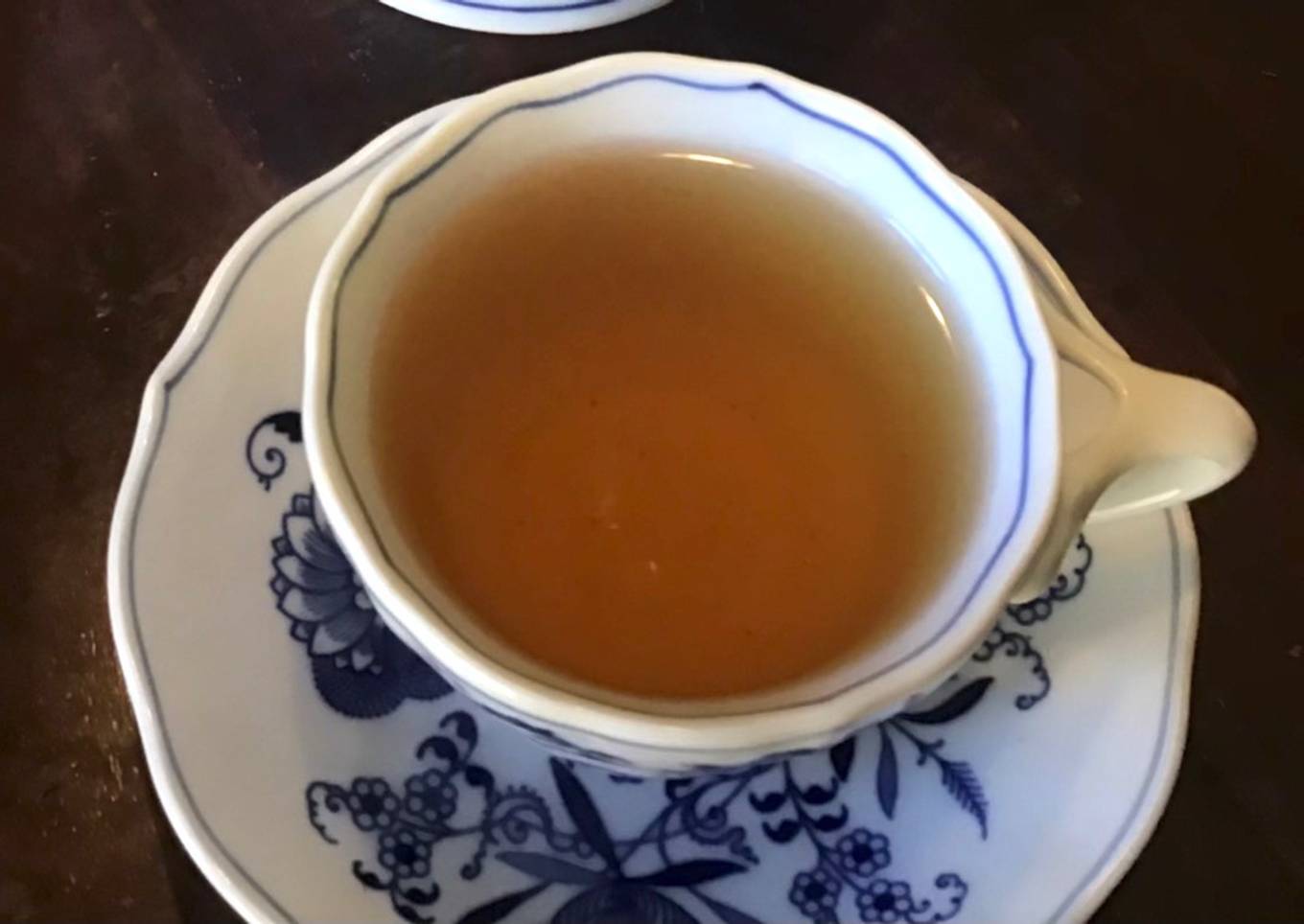 Here is the first cup of this Oolong tea. Tastes like the real thing, but fresher. You can make green, red, or black tea from the leaves depending how you roll and dry them.