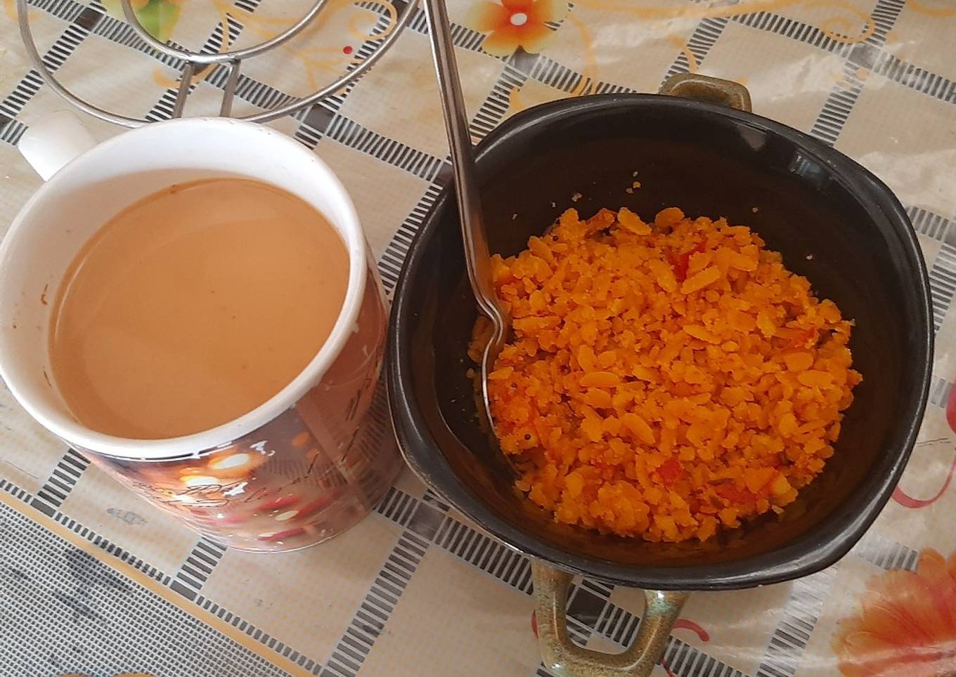 Tomato poha and tea