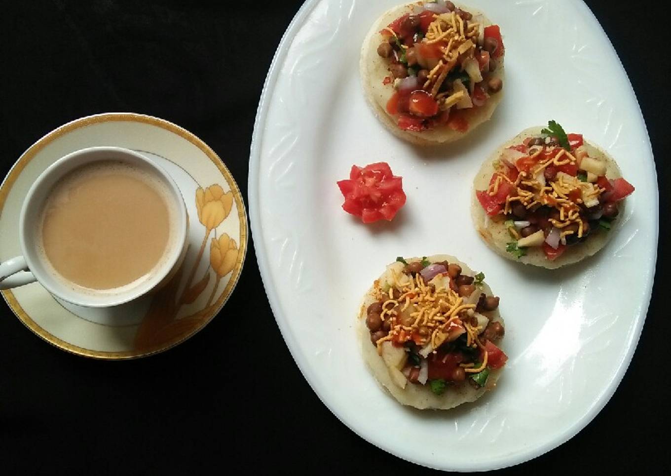 Crispy bread chaat with tea