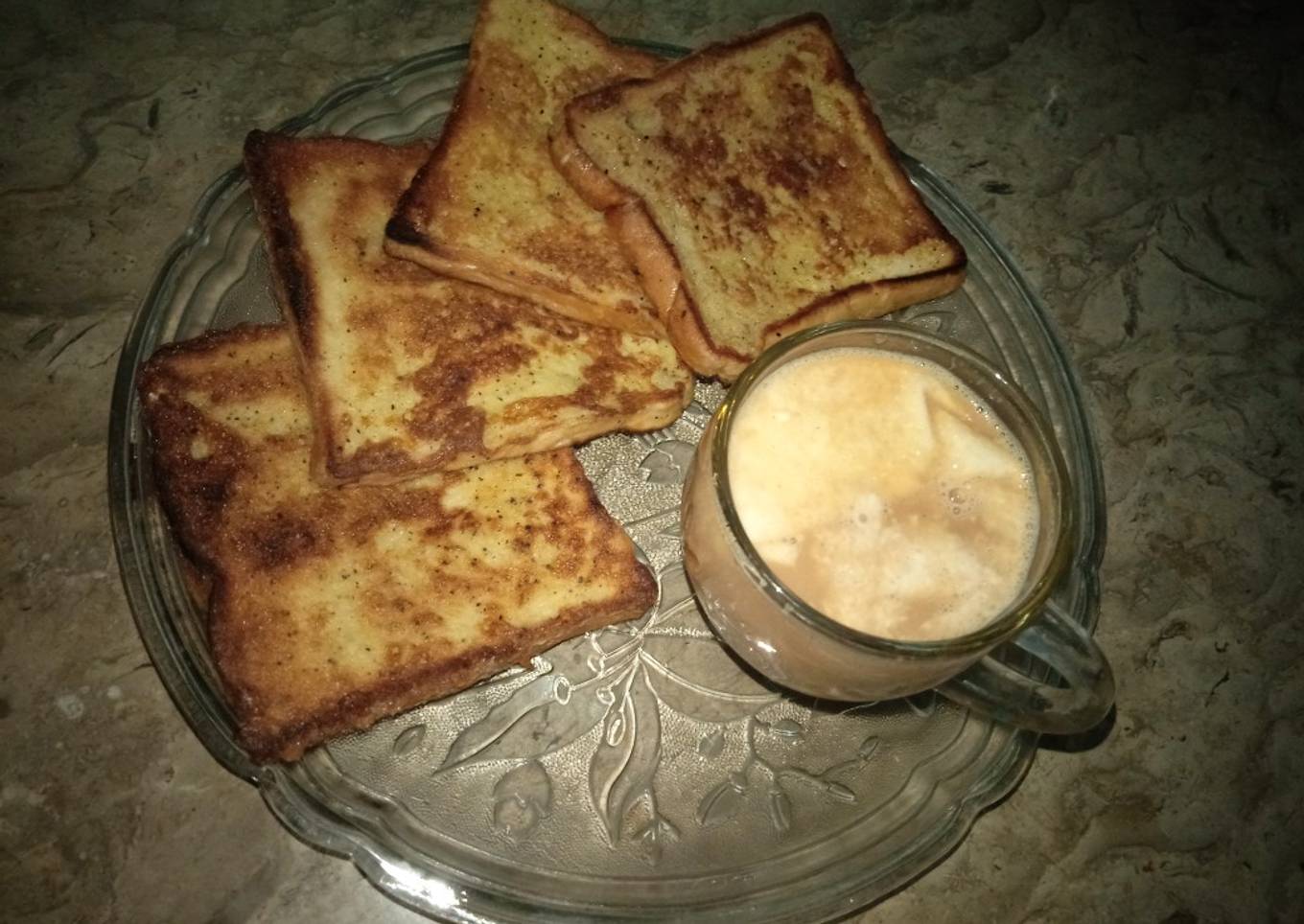 - Oil ya ghee garamLen, aur bread Slices ko one by one eggs waly batter Mein deep kijye 2no sides sy
