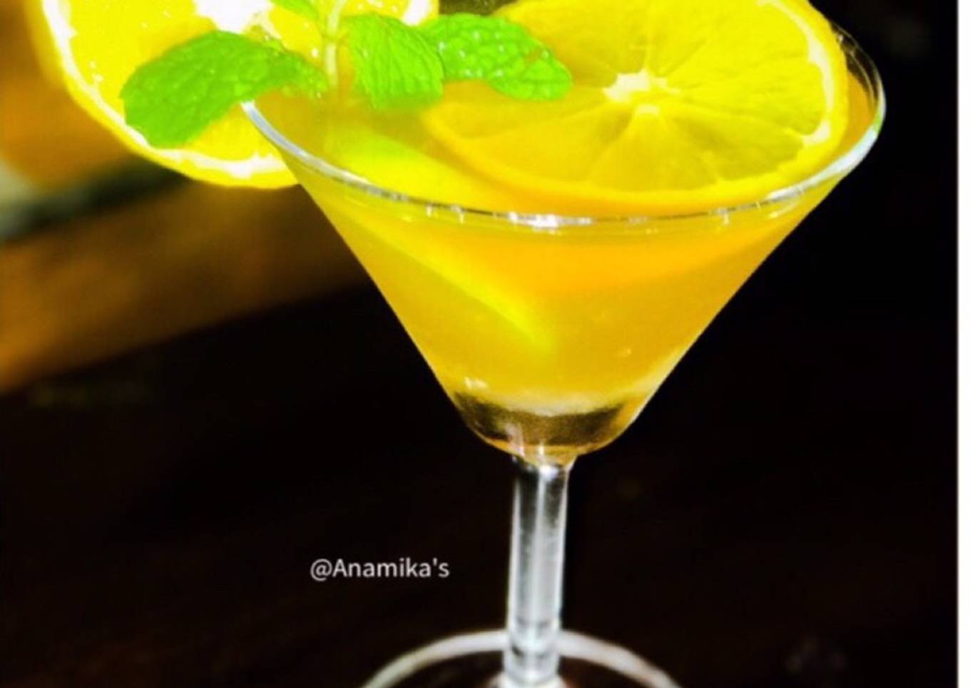 - Into the serving glass: Add in the Lemon wedges/rings, some mint leaves & the orange rings.Now, half fill the glass/es with the freshly squeezed orange juice, add in the ice cubes & chilled water & fill in the rest half with the iced tea concoction