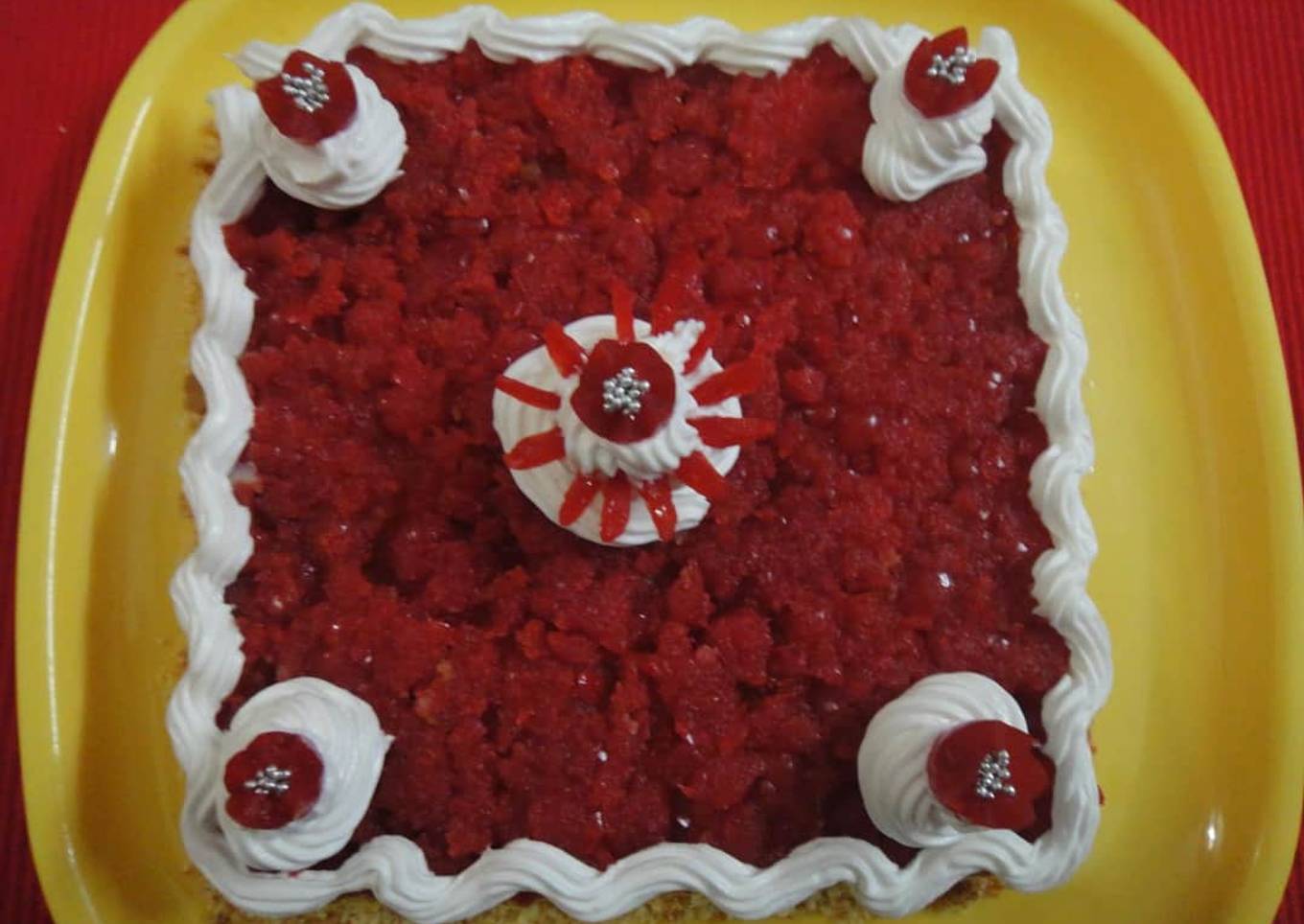 - Crush the cherries in a mixer.place it in the pudding mould.sprinkle half tbsp sugar syrup on it.then second layer place the powdered cake on it.sprinkle half tbsp sugar syrup on it.keep it in the refrigerator 5 min